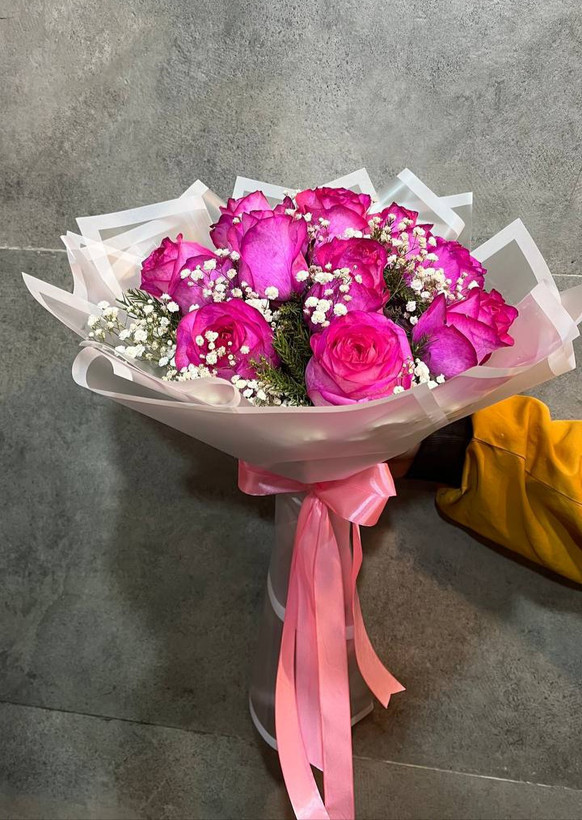 ✔️ دیزاین شده با ده شاخه گل رز سرخابی .